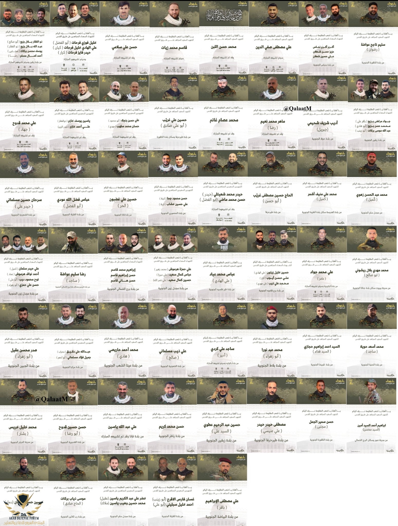 حتى صور النعي صاروا يحطون ٣ او ٤ في الصورة الوحده.. ماعندهم وقت يلحقونتم التعرف على هوية 78 قتيلاً من حزب الله بفضل دعوات الجنازة العلنية التي صدرت بين 8 و14 أكتوبر.