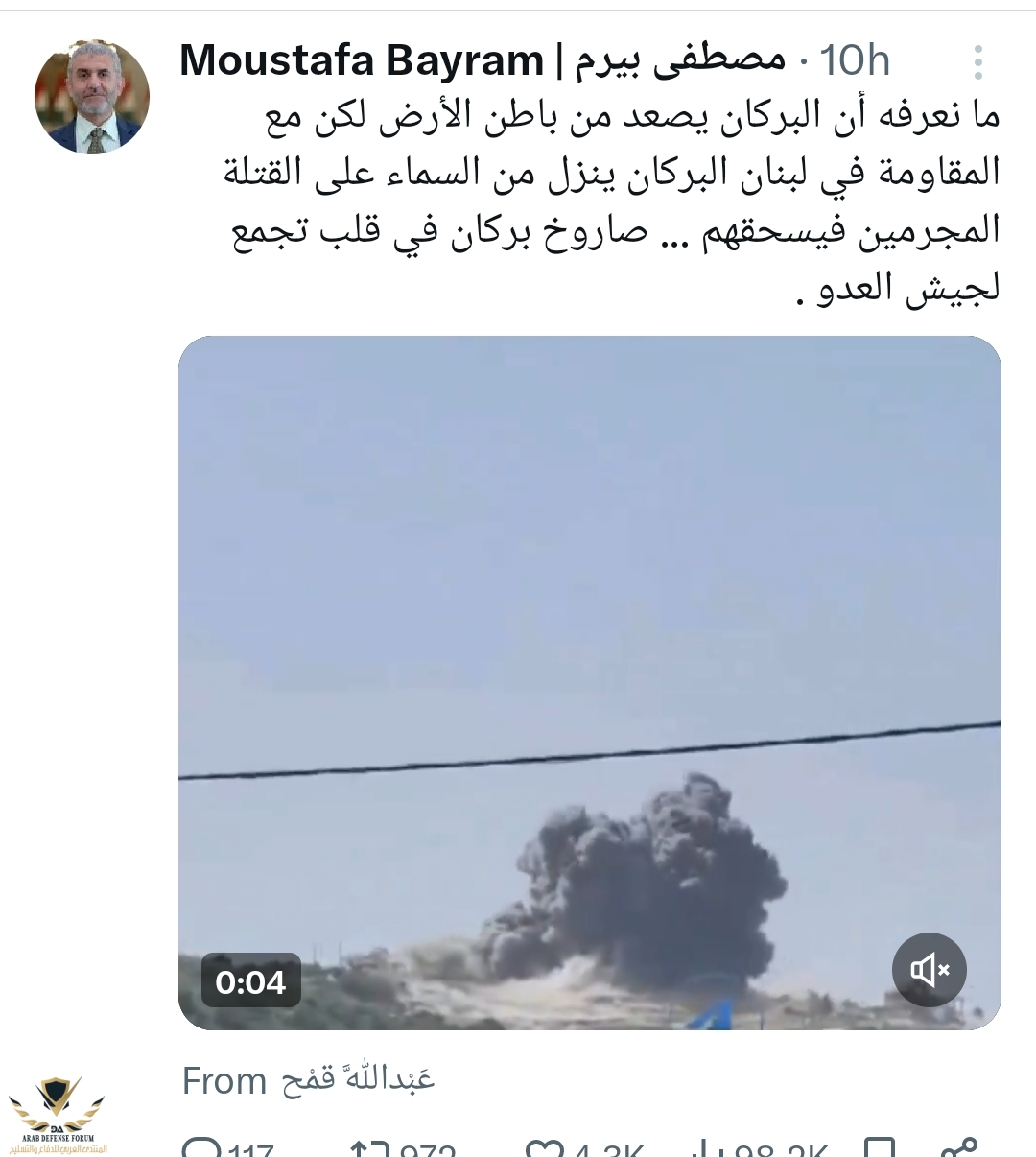 هذا وزير من حزب الله فما بالكم بحسابات اللي يقتبس منها الحلو@azaher77. ينشر فيديو ضربة اسرائيلية على انها صاروخ بركان. وقبلها فيديوات من روسيا وسوريا