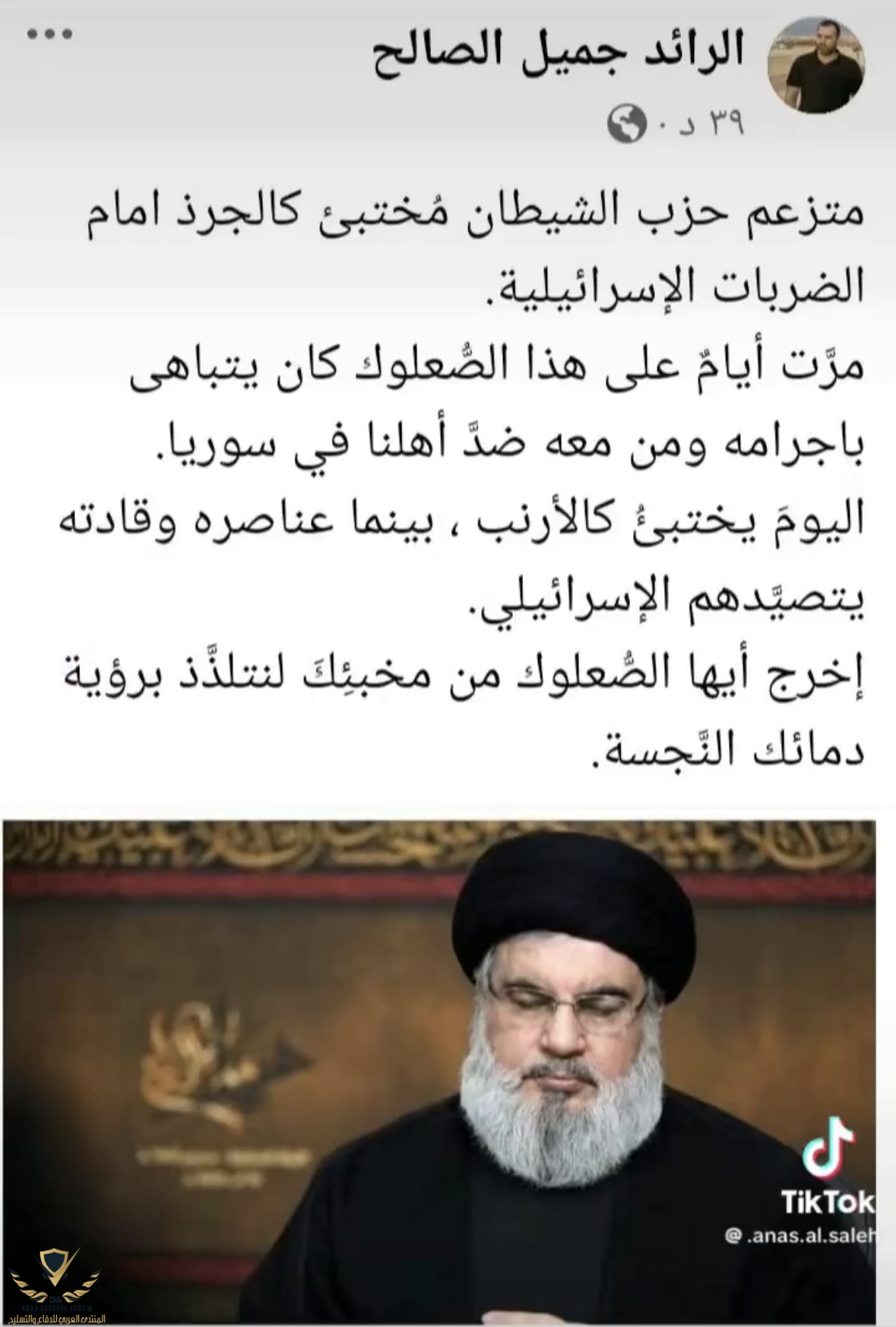 بصراحة انت خربت الموضوع بنشر تغريدات بلا اي قيمة عسكرية او سياسية من اشخاص غير معروفين فقط لانهم يتمنون الهزيمة لحزب الله و الدمار لايران و من ثم تطالب الحزب بتحرير فلسطين.