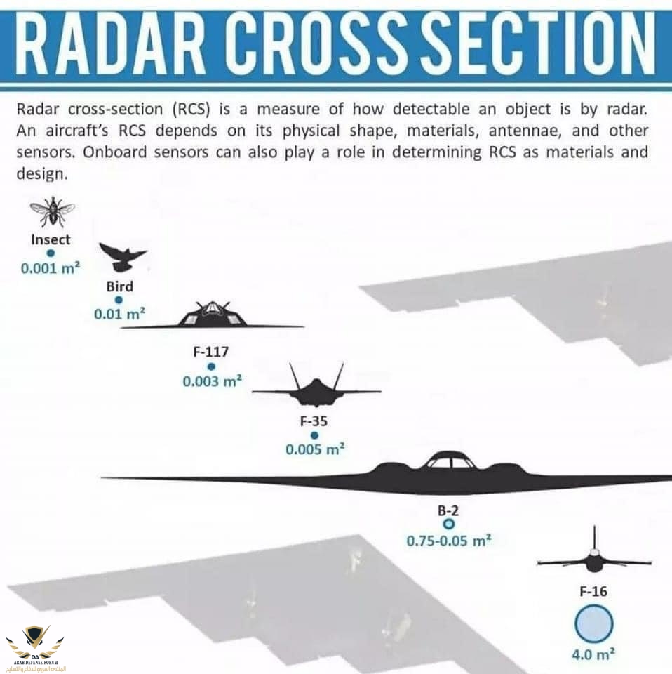 الانفوكرافيك ادناه يبين بصمة ال RCS للرابتور مقارنة بالشبحيات الاخرى والطيور...