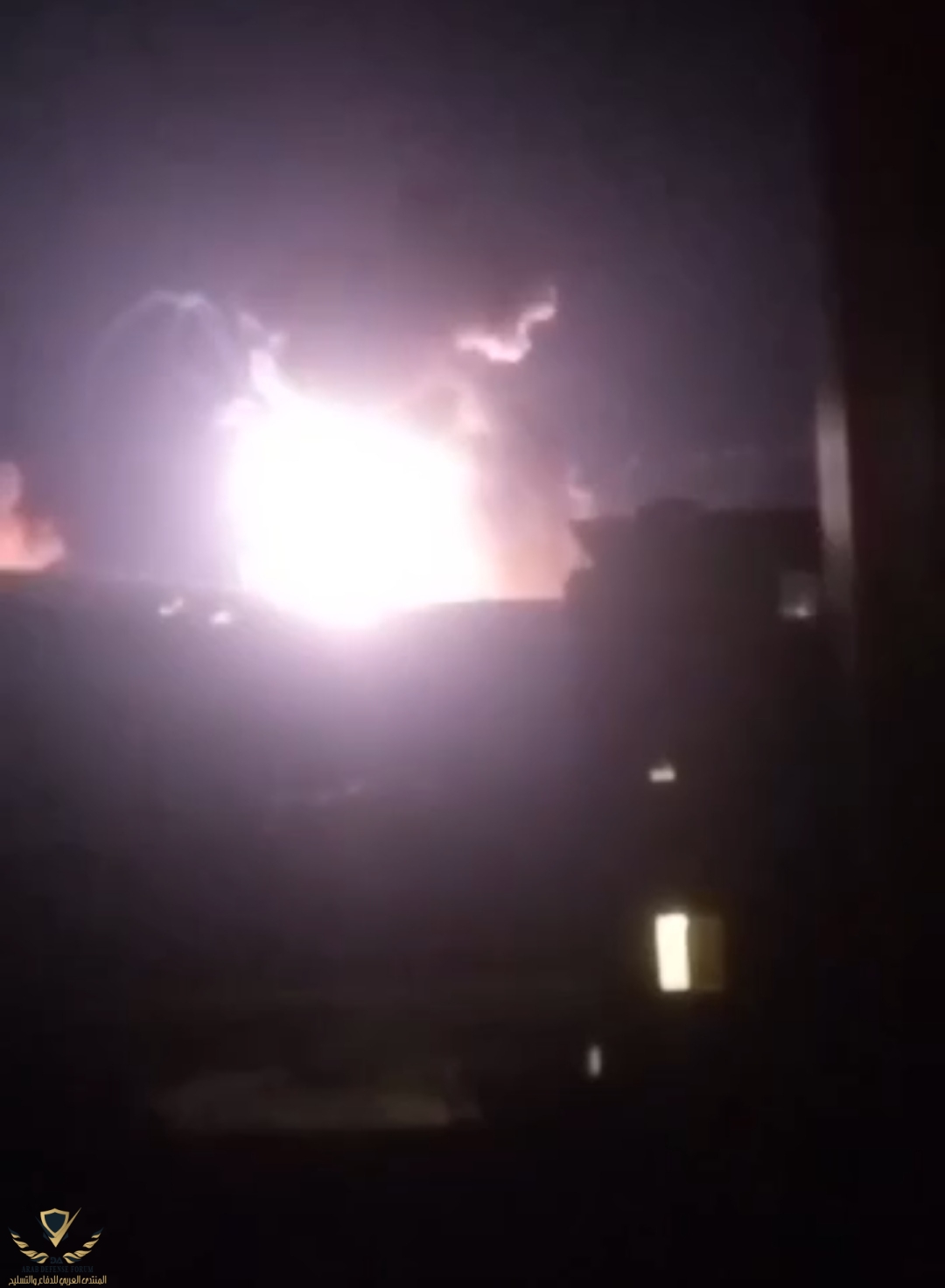 الفيديو مأخوذ من زاوية انفجار واحد ضمن سلسلة 3 غارات متتالية في نفس الخط.قذيفة تنفجر ٤ مرات