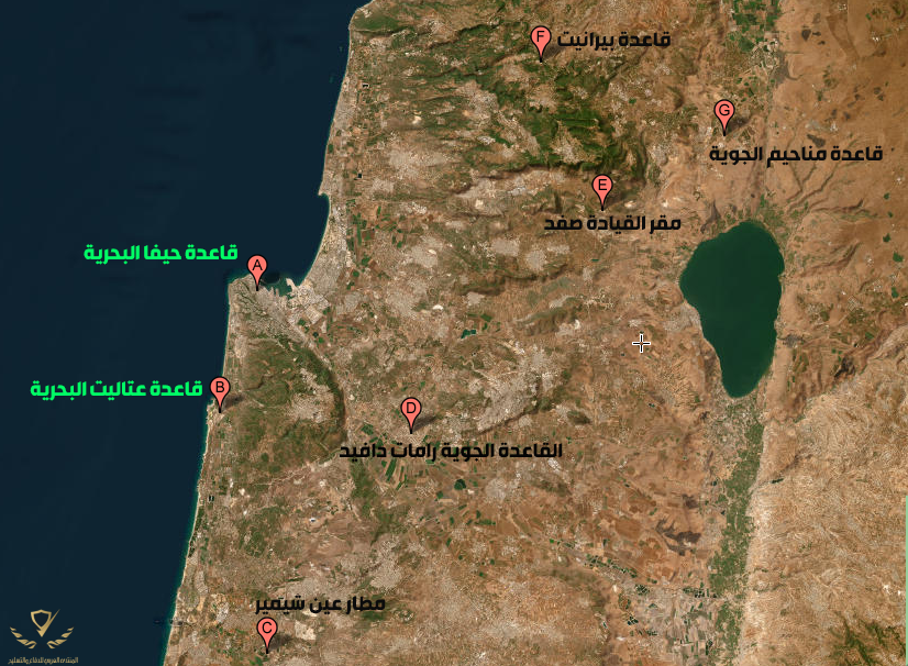 يوجد 22 موقع عسكري في الشمال من أهمها مقر القيادة في صفد و موقعين نوويين في اليابون و حيفا, اضافة الى 3 قواعد جوية و 2 كليتين حربييتين و الباقي مواقع عسكرية مختلفة,وتقريبيا 37 موقعا عسكري حدودي مع لبنان وسوريا تحتوي تلك المواقع على أجهزة رصد و تنصت وأبراج اتصالات لاسلكية.