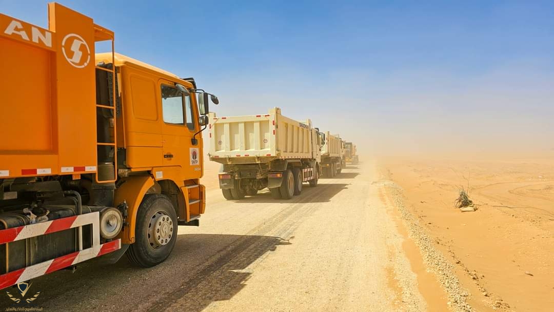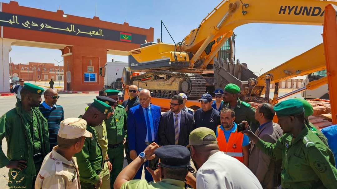 والي تندوف رفقة وفد جزائري رفقة حرس الحدود وضباط بالجانب الموريتاني و تواصل عملية عبور عتاد الأشغال العمومية لإنجاز الطريق الدولي تندوف الزويرات