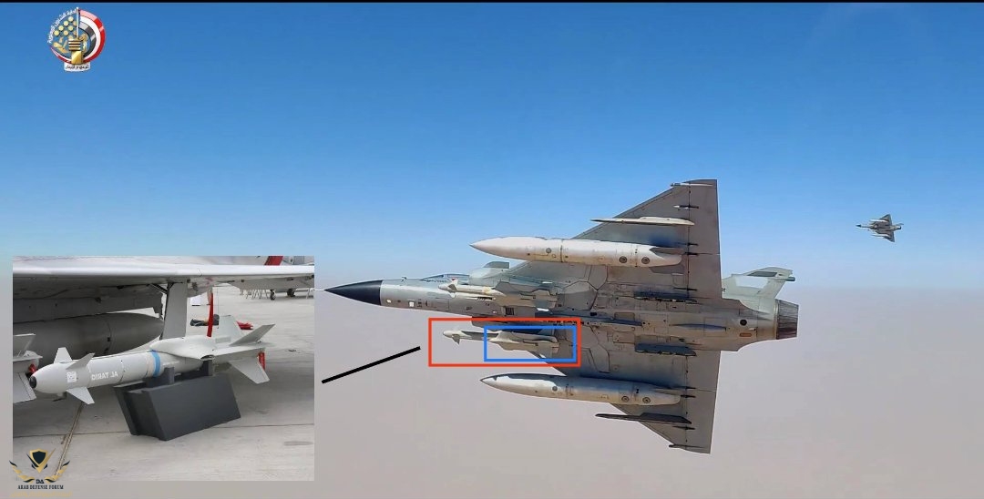 نلاحظ في هذه الصورة أن المقاتلات المصرية F-16 & Mirage مسلحة بقنابل Altariq النسخة LR ذات المدي 120KM