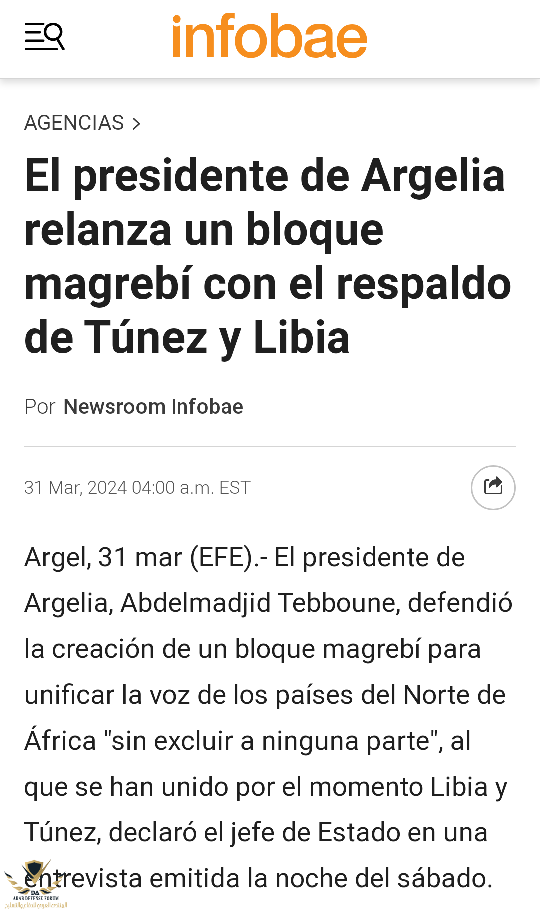 تفعيل دور الاتحاد المغاربي هذه المرة بين الجزائر وتونس وليبيا وموريتانيا..![]()