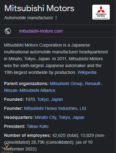 لا علاقة لرينو الفرنسية مع ميتسوبيشي رينو لها شراكة مع نيسان اليابانية و ميتسوبيشي شركة قوية وليست فاشلة بل العكس كان يجب عليك إلقاء نظرة على المجالات التي تستغل فيها من غير السيارات لتحكم عليها
