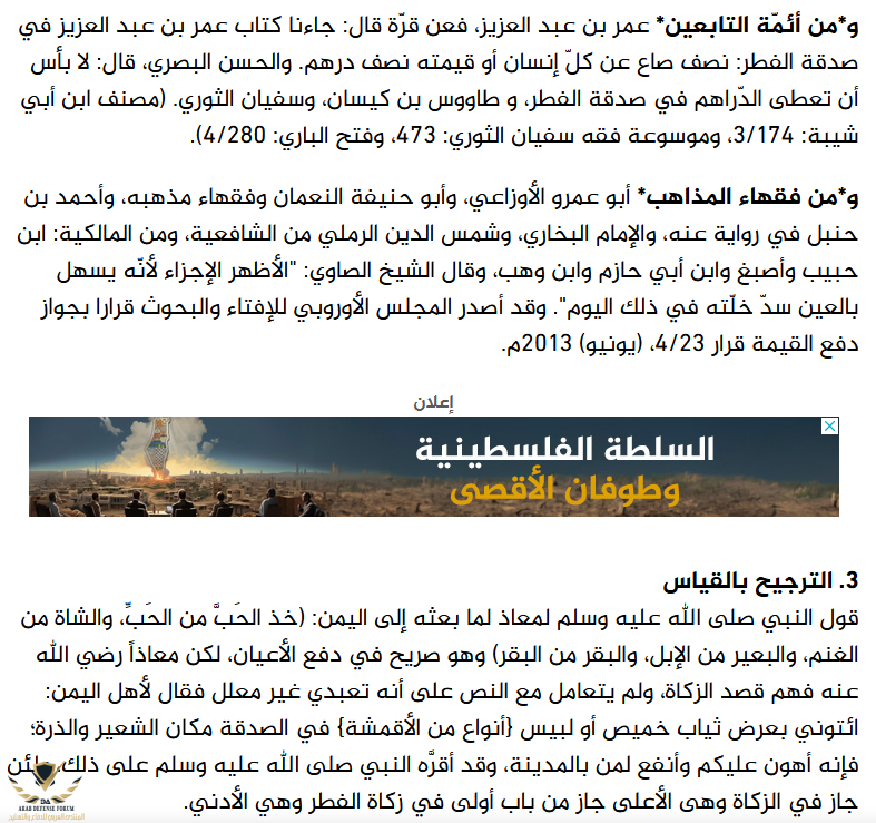 قرار رقم: (322) (3/ 2023) قيمة زكاة الفطر لعام 1444هـ