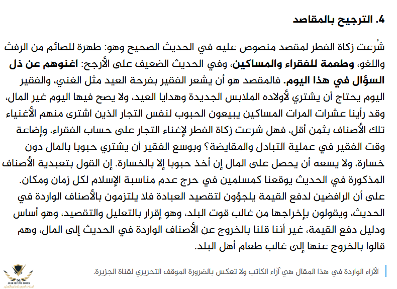 ما موقف القائلين بمنع اخراج زكاة الفطر نقدا من الاتي :