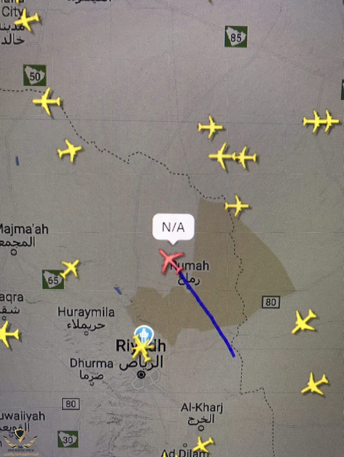 بس الاكيد انو فيه طيارات استطلاع طلعت من السعودية و كانت تستطلع في اجواء العراق . للاسف حذف صور الشاشة لهاي الطيران