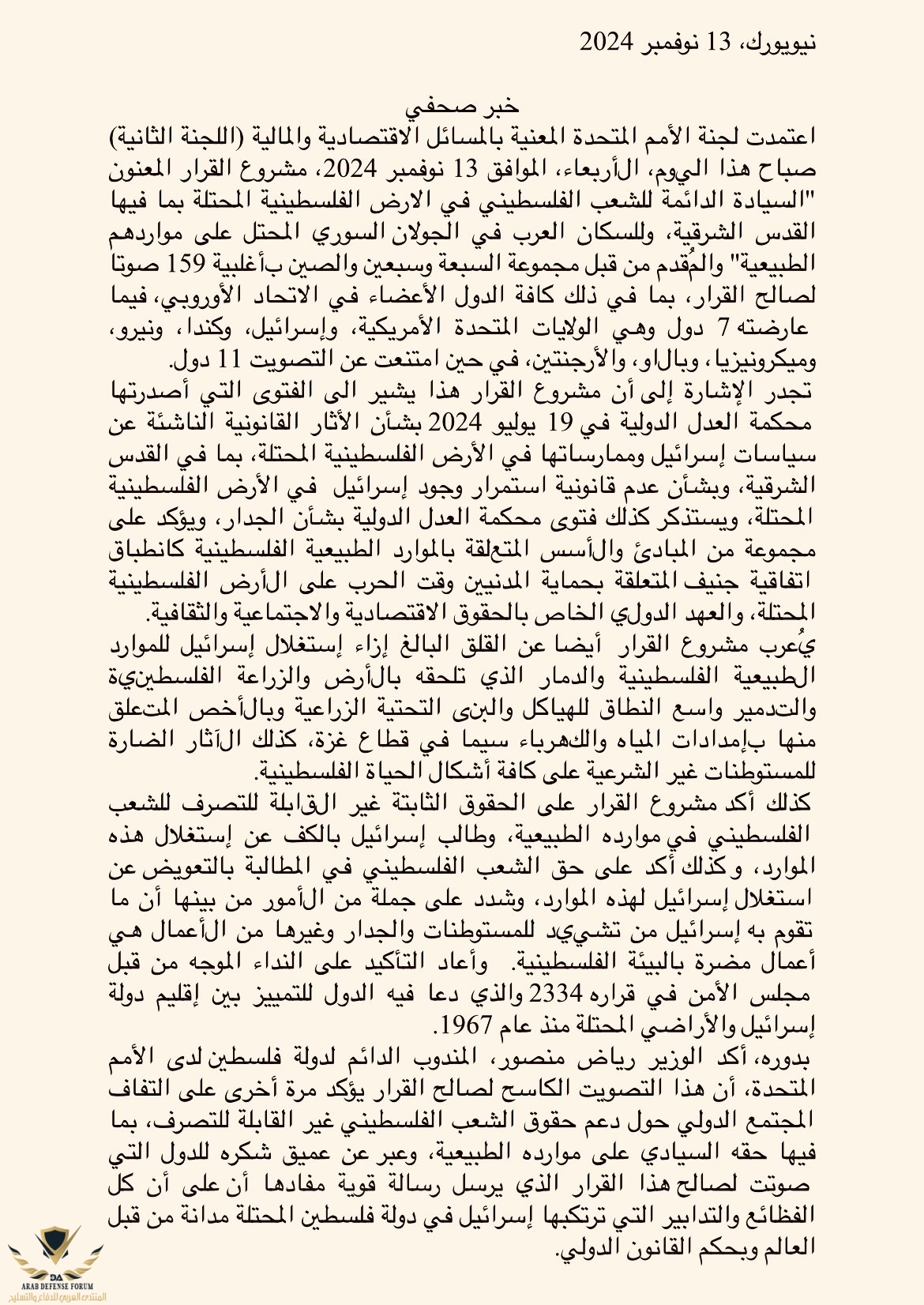 • التطبيع الإقليمي كرافعة سياسية لكن بضمان الحقوق الفلسطينية أولاً.