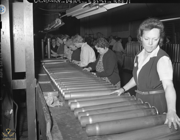 عاملات الذخائر يتفقدن علب الخراطيش في لوس أنجلوس، 1943