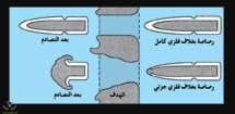 أنواع الرصاصات. تتألف الرصاصة من قلب فلزي يكسى جزئيا أو كليًا بغلاف فلزي. والرصاصة المكسوة بغلاف فلزي كامل تحافظ على شكلها عند إصابة الهدف. أما الرصاصة المكسوة جزئيًا (ناعمة الحافة)، فتمدد عند الاصطدام.