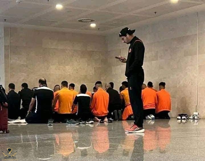 طبيعي لأن وقت وصولهم والإجراءات في المطار تزامنت مع وقت صلاة الجمعة، ومذا تنتضر أن يضعو لهم سجادات صلاة في وسط المطار؟؟؟؟ مش فاهم لماذا كل هذا الكذب ونشر أكاذيب ليست موجودة الا في اعلامكم؟؟