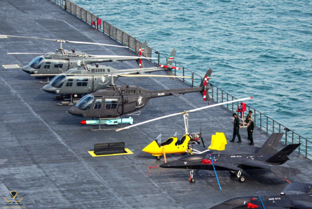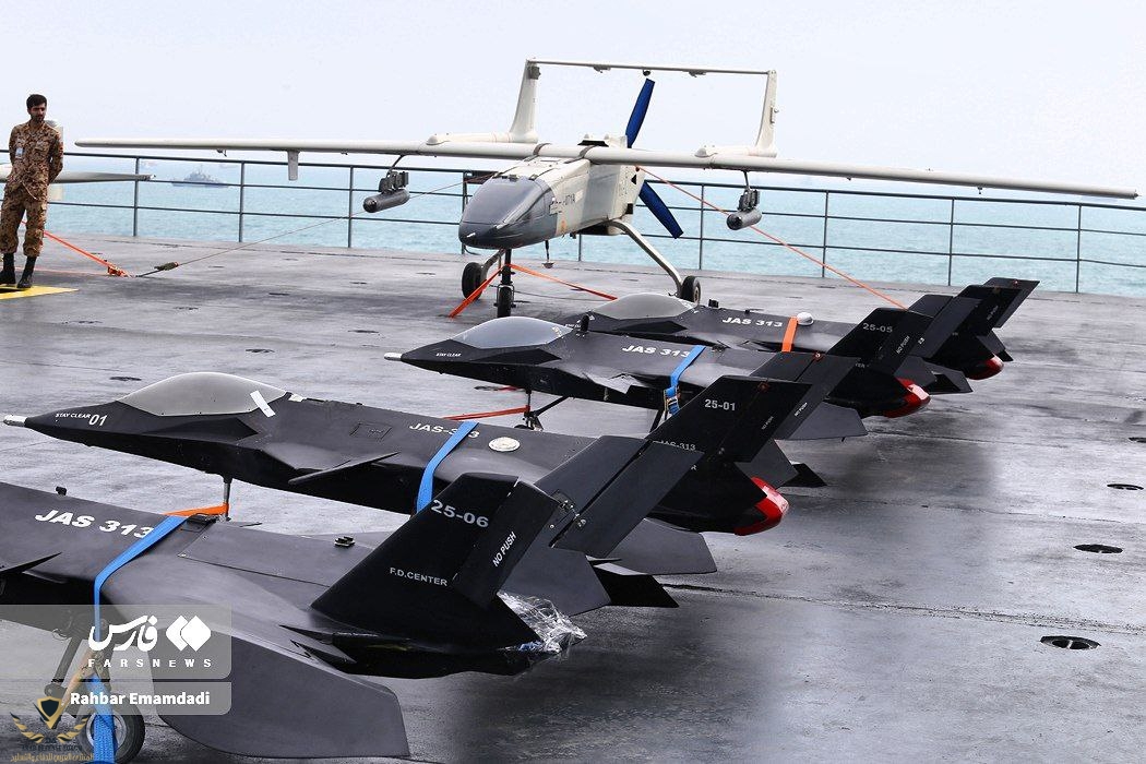 ستسمح حاملات الطائرات بدون طيار للبحرية الإيرانية بتقريب المركبات الجوية بدون طيار من ساحة المعركة. على الرغم من مواجهة سنوات من العقوبات من الغرب، تمكنت إيران من إنتاج أسطولها من الطائرات بدون طيار المسلحة التي انتشرت في ساحات القتال المختلفة في المنطقة وحتى في أوروبا، حيث أفادت التقارير أن الروس استخدموا طائرات الشاهد الإيرانية بدون طيار ضد أوكرانيا. يتم إنتاج الطائرة بدون طيار شاهد 129، التي تم الكشف عنها في عام 2012، على نطاق واسع وتعتمد على طائرات بدون طيار إسرائيلية. ويقال إن طائرات مهاجر 6 تم تسليمها إلى الحرس الثوري الإيراني منذ عام 2018. وقد استخدمت الجماعات المسلحة مثل حزب الله والحوثيين وحماس الطائرات بدون طيار ضد إسرائيل، المنافس اللدود لإيران في الشرق الأوسط.