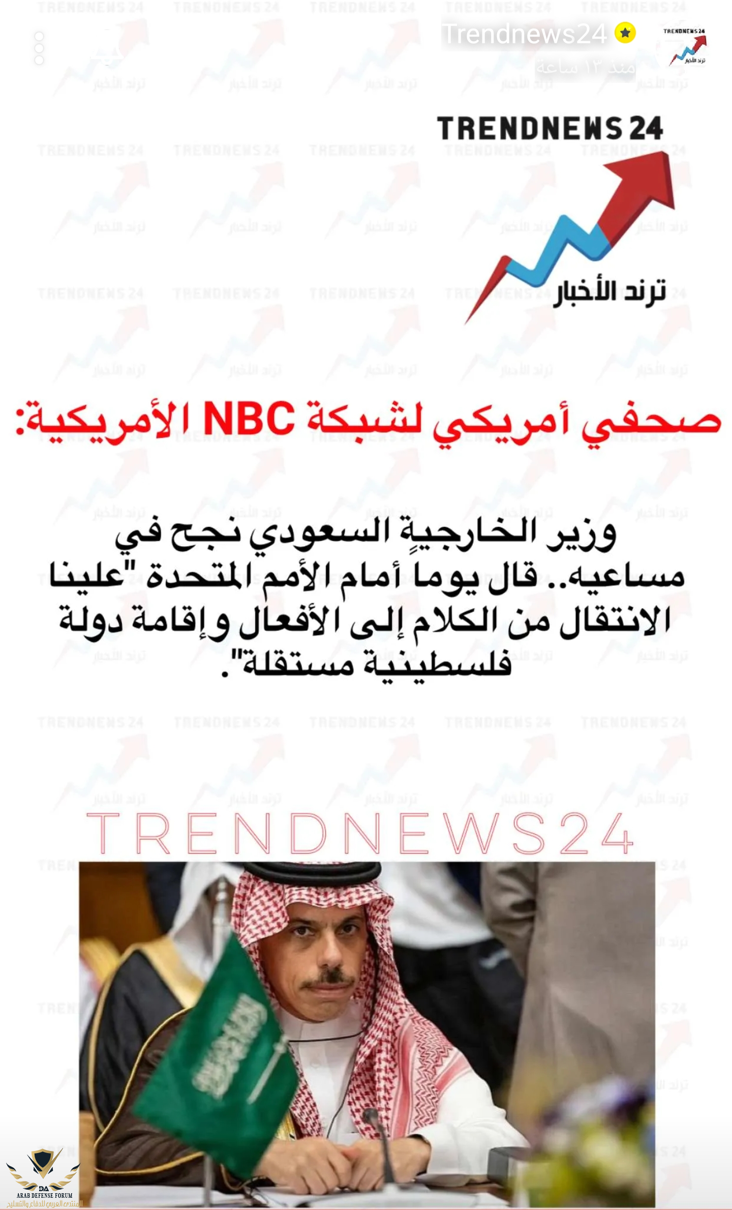 حل الدولتين مبدأ مشترك لا رجعة فيه مع المملكة العربية السعودية