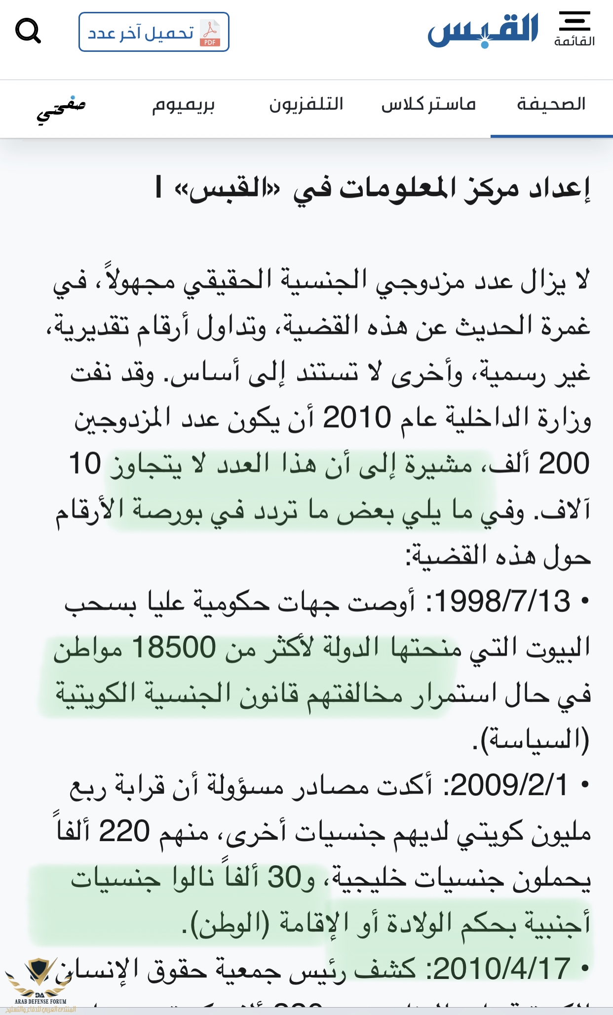 17: تسلّمت الكويت 42 ألف ملف لمزدوجين سعوديين وبحرينيين وقطريين يحملون الجنسية الكويتية. (الشاهد).