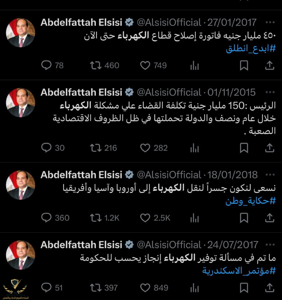 مصر لن ولم يكن فيها اى ازمه كهرباء مصر لديها المحطات العالميه وشبكه توزيع ممتازه تتحمل انتاج 50 الف ميجا المشكله كانت الموارد الدولاريه التى سيتم استيراد بها المازوت والغاز وتم تدبيرها خلاص مع خطه لرفع الدعم عن الكهرباء فى ظرف 4 سنوات لان الدوله لا تريد اهدار الموارد الدولاريه فى دعم