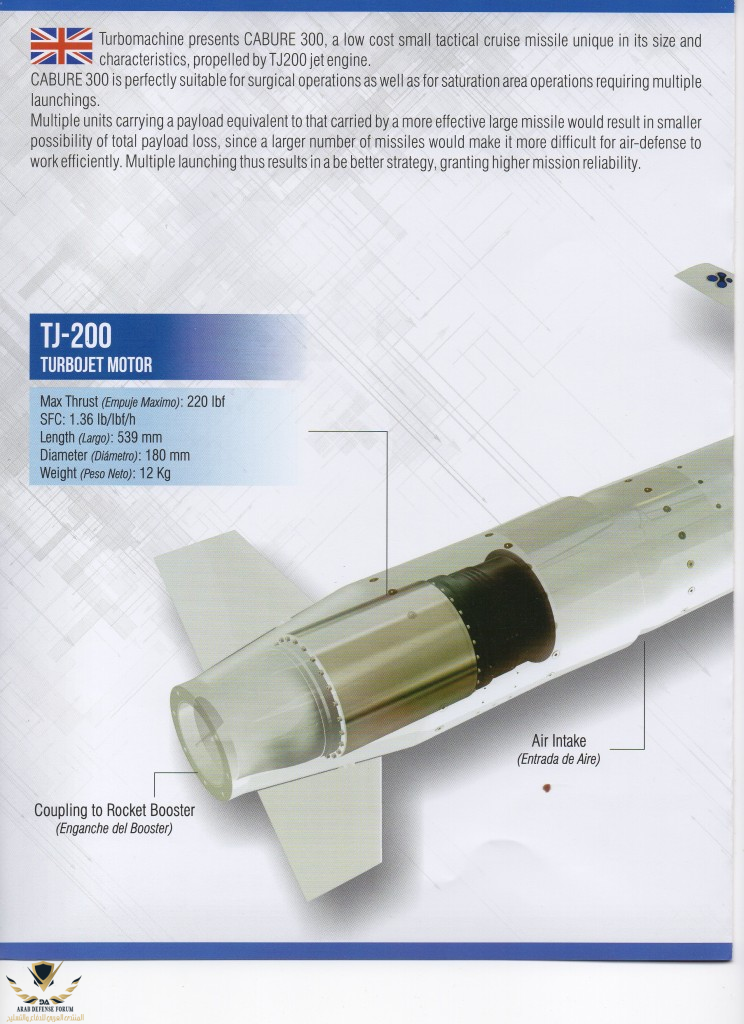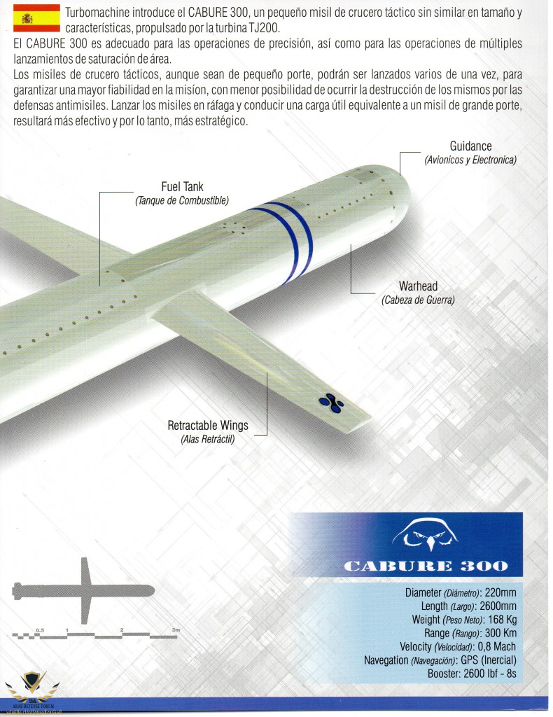 في معرض LAAD 2015 قدمت شركة Turbomachine تصميم صاروخ كروز صغير (Small Cruise Missile) يسمى CABURE 300 (Cabure = اسم بومة صغيرة ، 300 = مدى الصاروخ). وفقًا لشركة Turbomachine، فإن Cabure 300 هو صاروخ كروز تكتيكي مناسب للعمليات الجراحية وعمليات تشبع المنطقة.