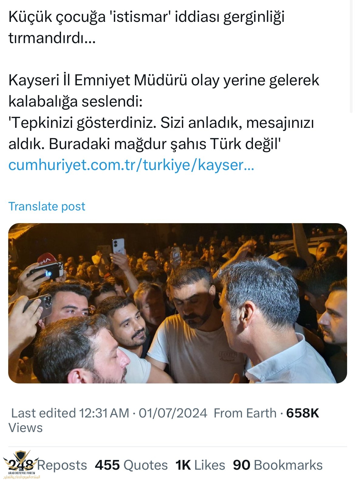 هذا قائد شرطة مدينة قيصرية الى حصلت فيها حوادث العنصرية يقول لهم بعد ما خربوا و دمروا و ارهبوا الناس و اعتدوا عليهم