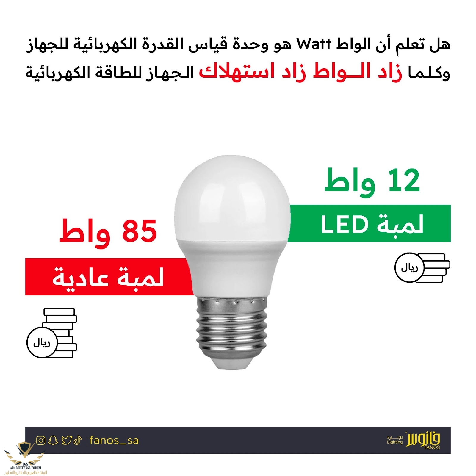 تجبر المستورد يكون واط اقل واللومن عالي و هو اللي يحدد قوة الضوء وهذا شغل هيئة المواصفات والمقاييس السعوديه بدل الصيني ابو30 واط يشفط الكهرباء شفط واضاءته اي كلام