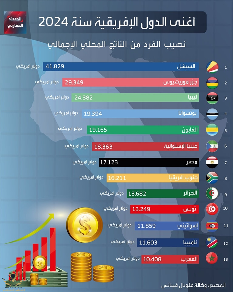 عندك البنك الدولي حل مشكلتك معاه أما الواقع يقول أن نصيب الفرد في الجزائر والغابون ومصر وسيشيل وتونس أفضل من نصيب الفرد في المغرب من الناتج المحلي يعني حسب رأييك أين يذهب نصيب الفرد من الناتج المحلي في المغرب!