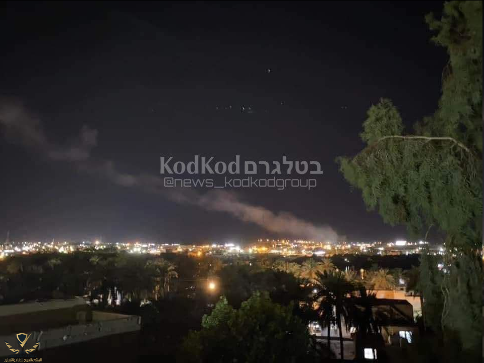 هجوم يستهدف قاعدة عين الأسد والتي تضم قوات الأحتلال الأمريكي في محافظة الانبار في العراق واشتعال النيران