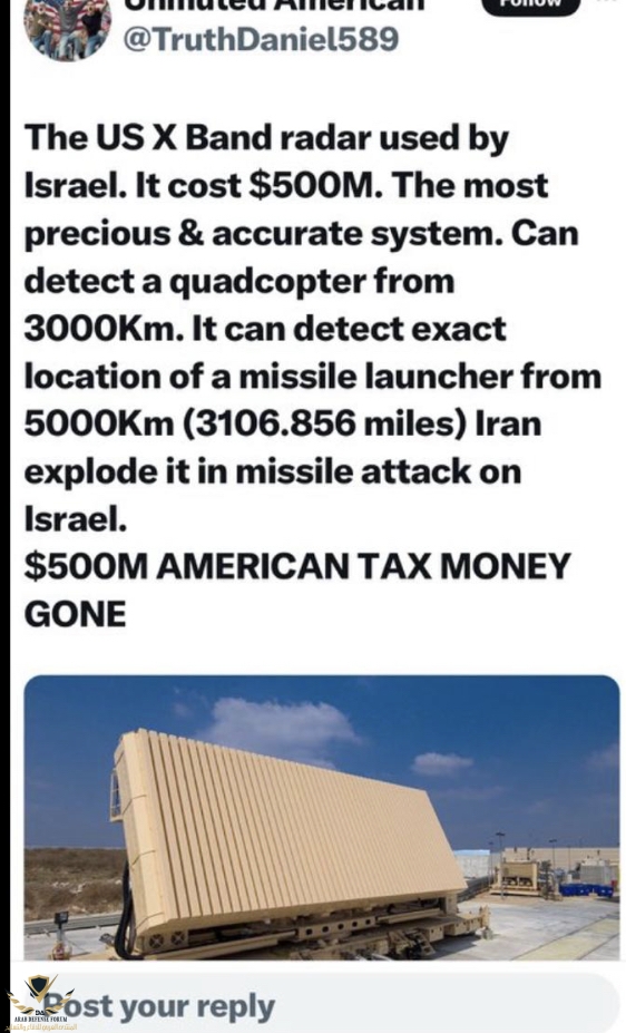 و ايران ضربت ام الرادار الامريكي الي انت تقول عنه بوكس كهرباء