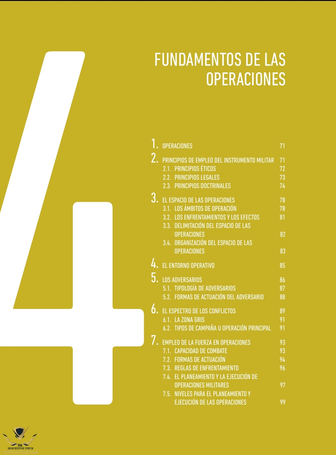 هو اول منشور يحدد العقيدة القتالية للجيوش الإسبانية، متى، كيف، تعريف العدو،تحديد اساليب العدو، التحول من حالة السلم الى عملية عسكرية الى حرب، المنطقة الرمادية... الخ... كثير من النقاط التي توضح بشكل صريح العدو.. و متى يلجأ الى استخدام القوة الحربية.
