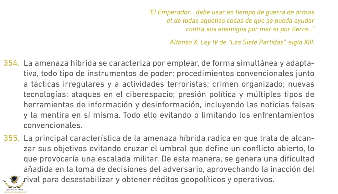 عقيدة المملكة الإسبانية في استخدام القوة و القوات المسلحة الإسبانية مبنية على معطيات و نقاط محددة بدقة.
