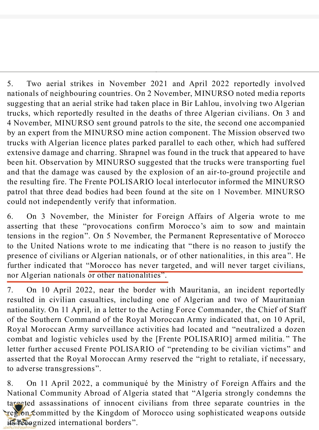 بالمناسبة قبل سنتين تم قصف شاحنات جزائرية دخلت لتلك المنطقة ، المنطقة العازلة كذالك اصبحث مركز تجريب انظمة التسليح الجديدة التي يتسلمها المغرب و هي بالمناسبة منطقة قاحلة مفتوحة