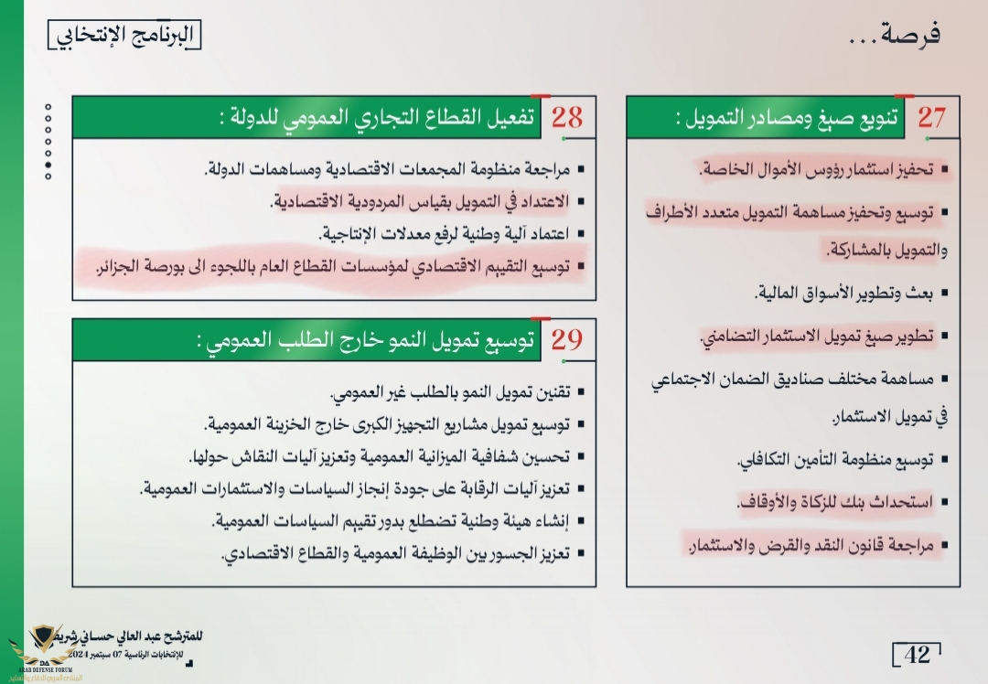 هل لديك PDF الخاص بخطته للحكم؟ وجدت فقط بعض التصريحات ولكن أريد خطته الشاملة المكتوبة ،سمعت ان لديه خطة أيضا مثل عبد العالي حساني متكونة من 30 صفحة ولكن لم أجدها