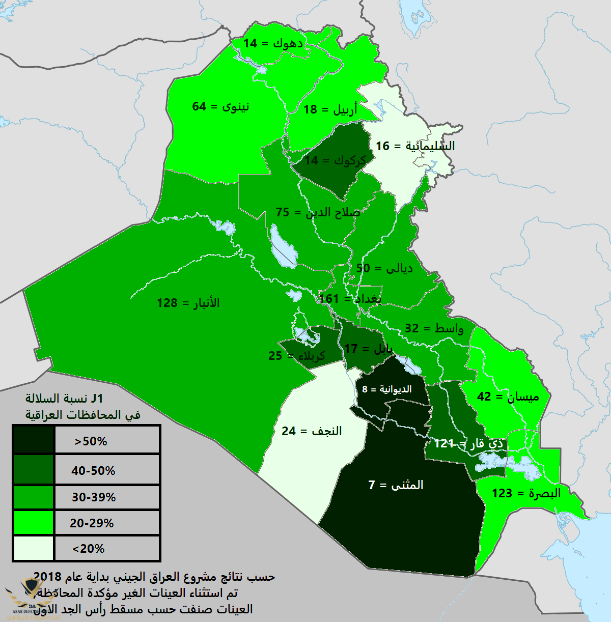 توزيع السلالت العربية للعراق لا يتعدون ال50% بأكثر محافظة العراق عربا جينيا