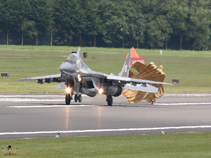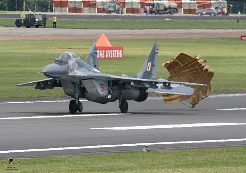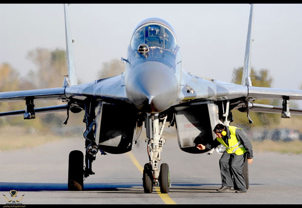 هنا يستطيع فني الطيران من التحرك بحرية امام محركات الميغ 29 وهي عاملة بسبب نظام الحماية