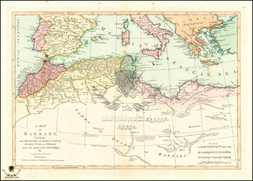 خريطة سامويل دون 1794 م سنوات قليلة قبل الاحتلال الفرنسي للجزائر