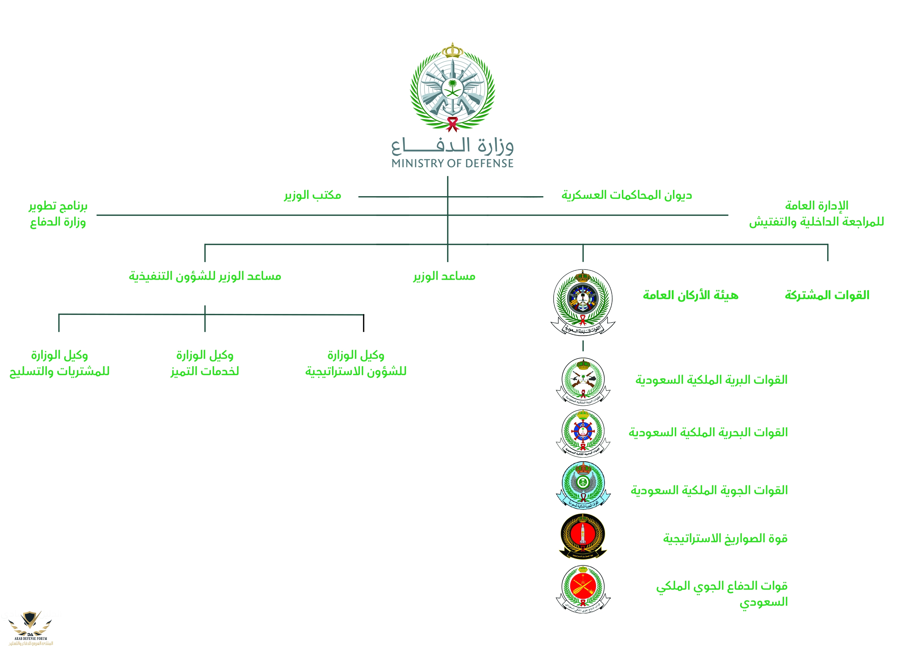 بالضبط أفرع القوات المسلحة والحرس الوطني بالإضافة إلى أفرع القوى الوطنية مثل هيئة الهلال الأحمر و الدفاع المدنيصحيح وايضا لها تقاطع مع كل قطاعات الدوله الامنيه