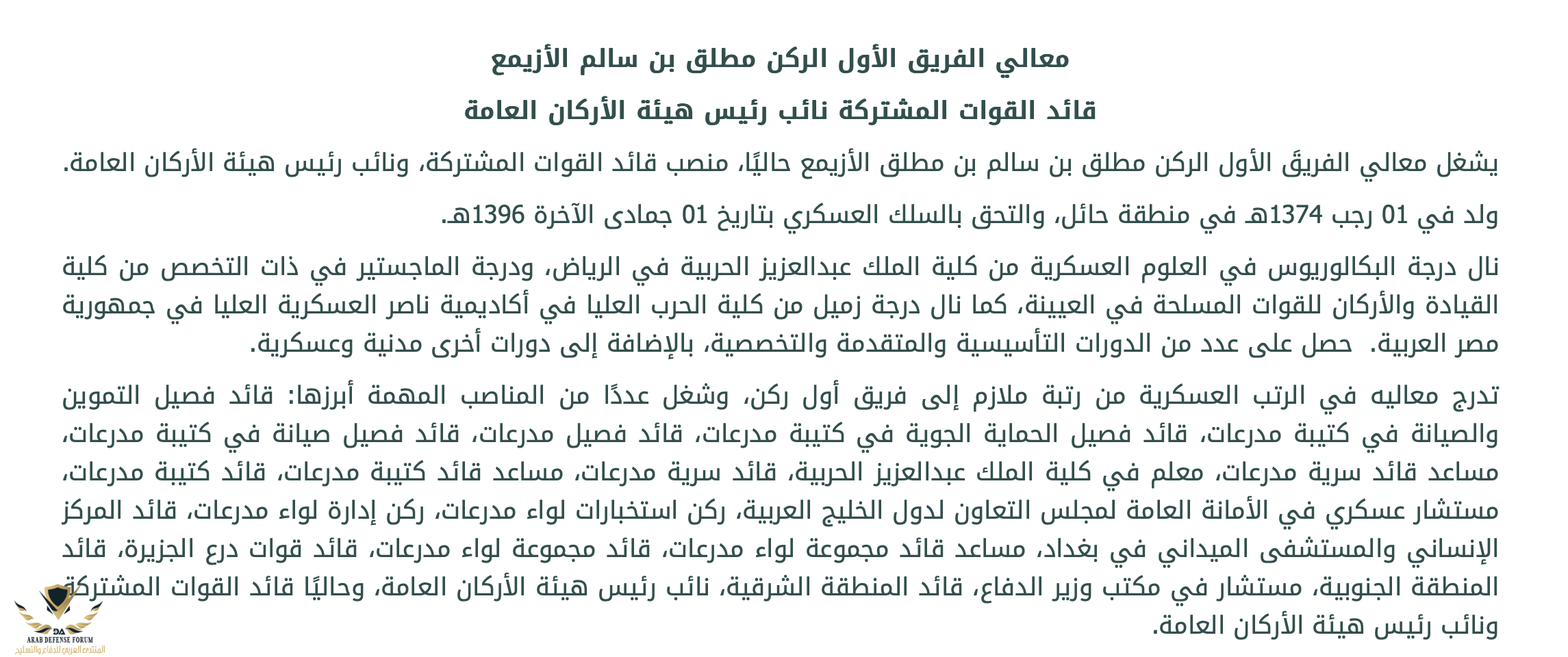 بصراحه توقعت الازيمع يمسك الاركان مع انه كان في نفس مستوى رئيس هيئه الاركان