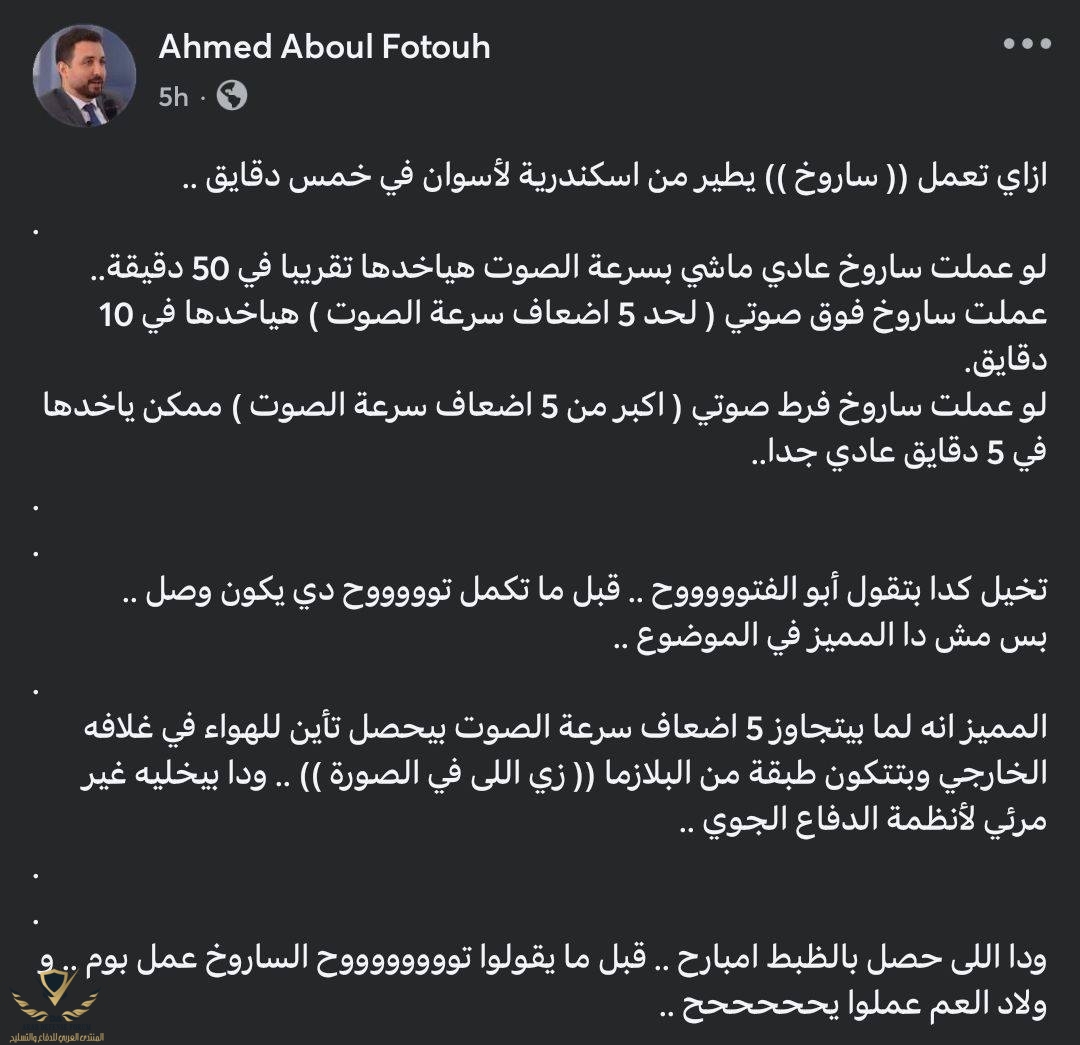 اى جيش عربى مواجه ليس لديه هذه الصواريخ يرتكب جريمه فى حق نفسه وبلده