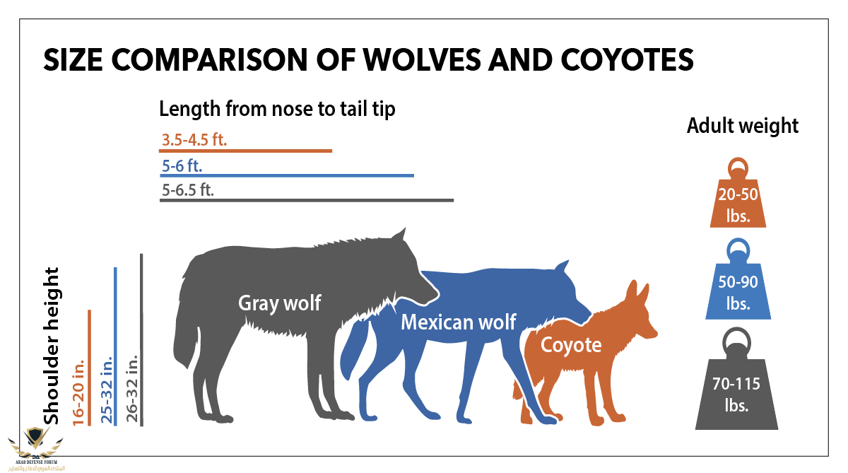 وده يختلف عن الذئاب الاوراسية والأمريكية اللى ذكرهم الاخ Aquila اللى بيبقو اكبر و اقوى من الكلاب