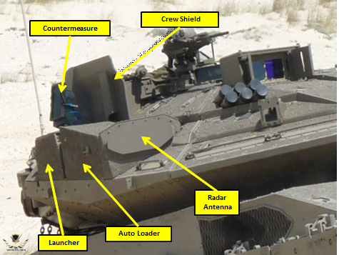 ام مدفع رشاش خفيف او متوسط او ثقيل بذخيره انشطاريه مرتبط بانظمة استشعار متنوعه لضمان العمل بكافة الظروف الجويه ضباب، ليل، غبار واجواء المعارك من دخان... هنا يدخل عدة اعتبارات بالاختيار ... تصنيع محلي او استيراد ، التكلفه . امكانية الدمج بما لايوثر على وظيفة الدبابه الرئيسي... لنا عوده مع الاختيار لل hard kill سواء سي رام او قذائف انشطاريه متنوعة العيارات.