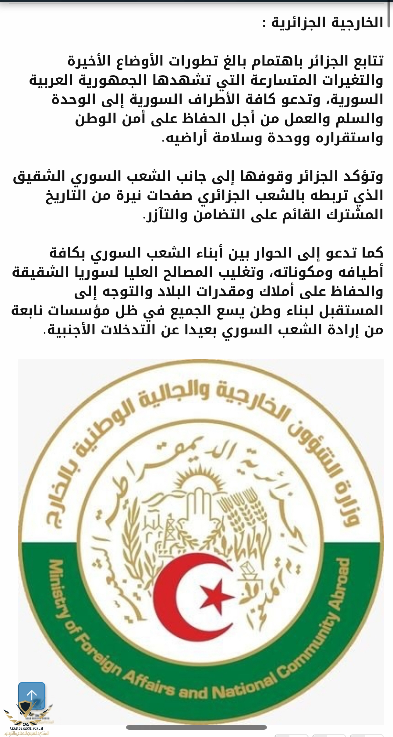انا اجبتك وفقا لمنشور وزارة الخارجية التي وضعته انت ..بامكانك ان تراجع مشاركتك والمنشور الذي قمت بوضعه سابقا ...وشخصيا انا ايضا موقفى هو نفس الموقف الذي جاء في هذا المنشور.. نتمنى الخير والسلام للشعب السوري وسلامة اراضيه ووحدة ترابه رغم ان اعلم يقينا ان هذا وللاسف اخر ما سيحققه السورين ...