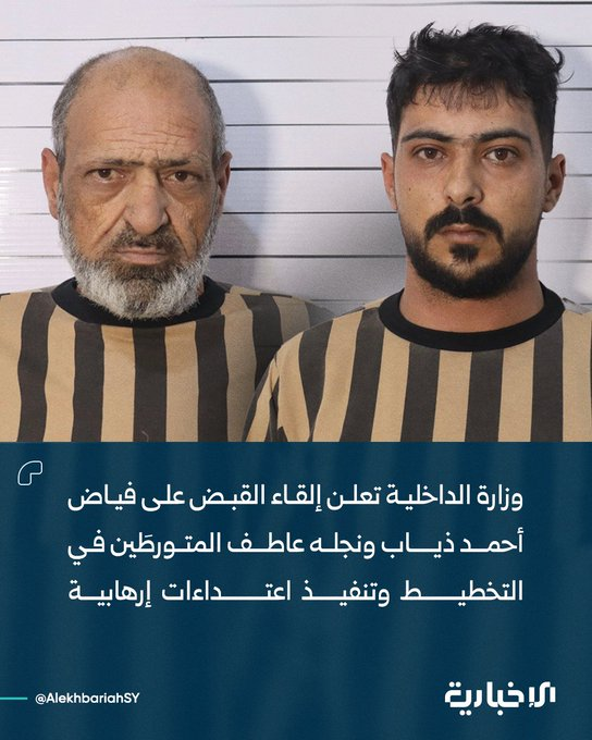 📌 أفراد الخلية الإرهابية اللذين أُلقي القبض عليهما خلال العملية الأمنية التي نفذتها وحدات وزارة الداخلية بالتعاون مع جهاز الاستخبارات العامة هما فياض أحمد ذياب ونجله عاطف