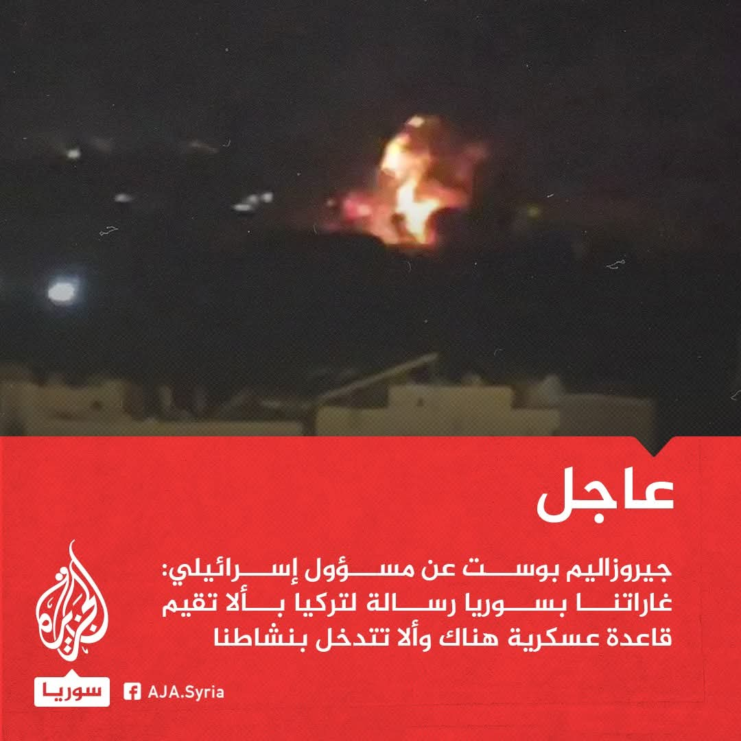 يوجد شيء في قاعدة تي فور لا مقاتلات و لا منصات دفاع جوي والمجال الجوي السوري مستباح للجميع الان والمدرج يمكن اصلاحه في ساعات لو افترضنا انه تضرر ....لكن قصف مطار تي فور سيعطي مبرر لتركيا لنشر قواتها و انشاء قاعدة جوية لها هناك بحجة مواجهة الطيران الاسرائيلي الذي كان فعليا يستخدم الاجواء التركية سابقا لقصف المفاعل النووي السوري و الدفاعات الجوية السورية في زمن بشار الاسد ....يمكن بوضوح رؤية التنسيق التركي الامريكي الاسرائيلي في المنطقة .