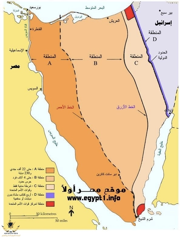 قوة من 1600 عسكري تقوم بمهام تفتيش كل اسبوعين وتتاكد من حجم القوات المصريه في مناطق أ ب ج