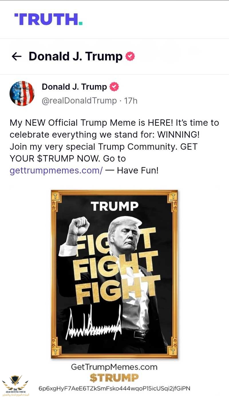 ترامب يطلق Trump ( بدأت بسعر 0.17 سنت ودلوقتي 27 دولار )​