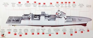 واسلحه معقده زي مدمرات وسفن قتال من فئه اسطنبول و TF 2000 اللي نسب المكون المحلي وصل فيها ل ٨٠٪؜ !