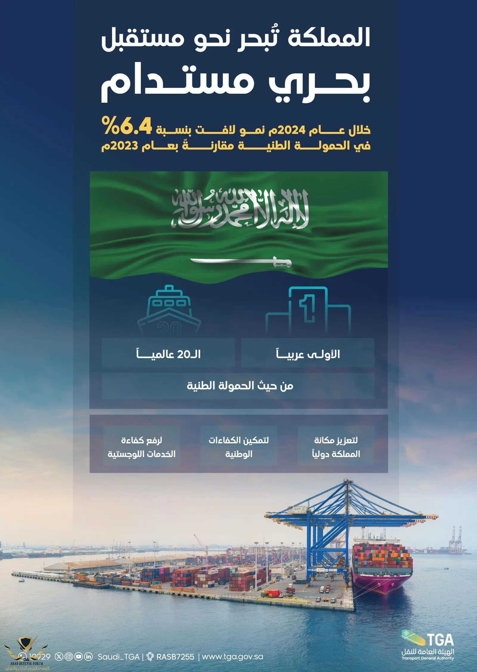 اقتصادي / المملكة ترسّخ ريادتها البحرية بتصدرها إقليمًا في الحمولة الطنية التجارية لعام 2024