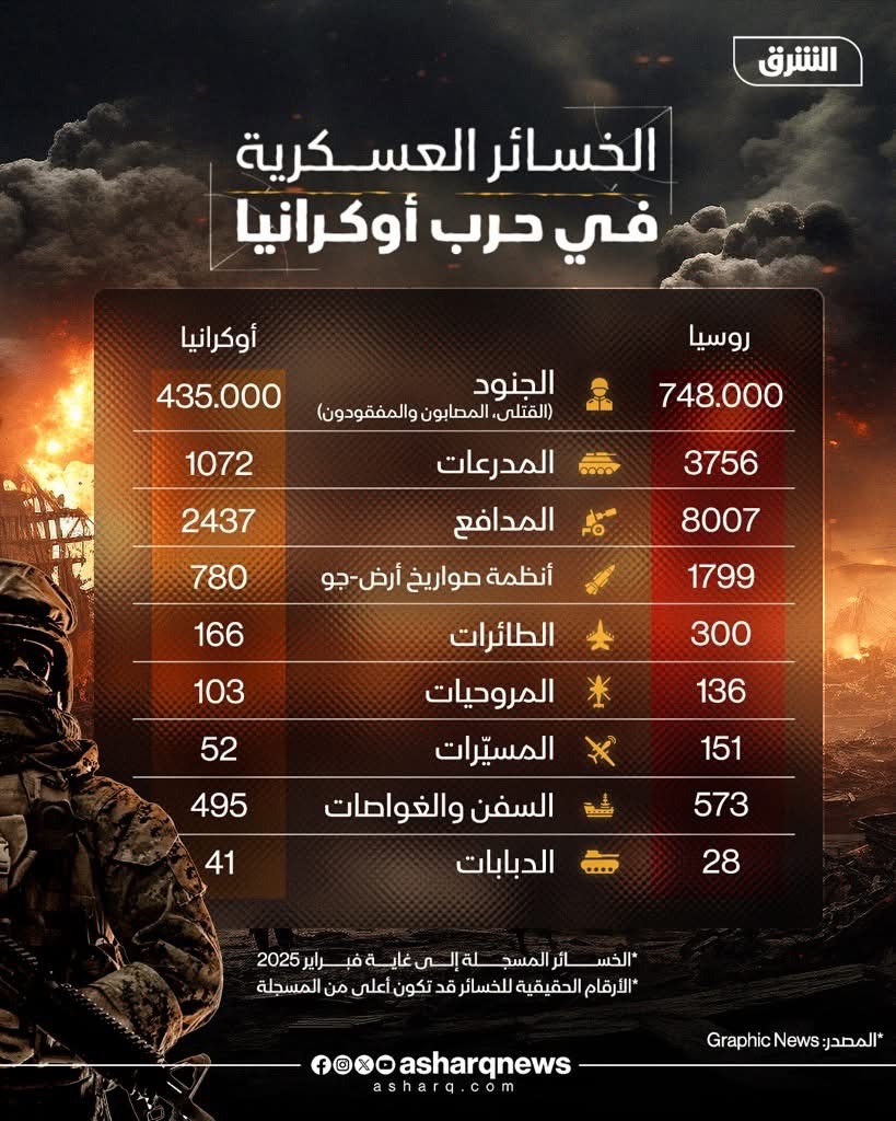 اللي حط ارقام الوفيات والاصابات للجنود هذي من كيسه اجل ٧٤٨٠٠٠ - يا رجل هذا الرقم اكبر من عدد القوات البرية في روسيا بالضعف