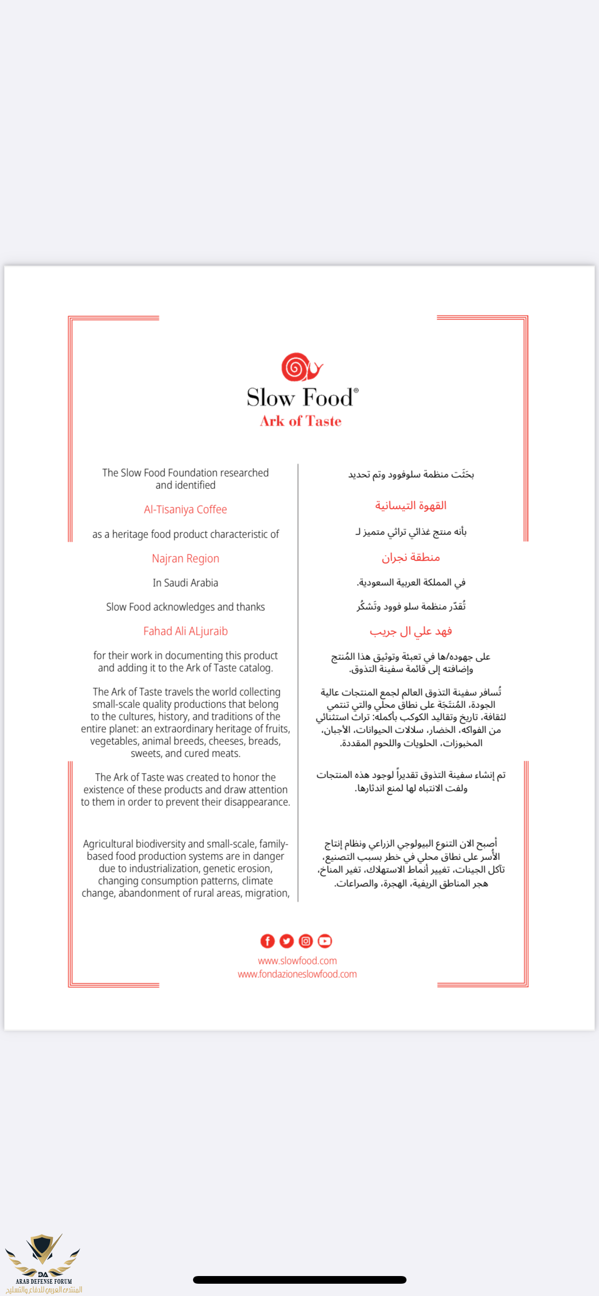 القهوة التيسانية النجرانية مشاهدة المرفق 757031حققت ٨٦% على جميع الدول المشاركة في مهرجان سلوفود العالمي .