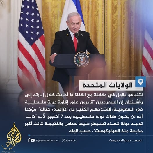 نتنياهو: السعوديون قادرون على إقامة دولة فلسطينية في #السعودية فهم يملكون الكثير من الأراضي هناك