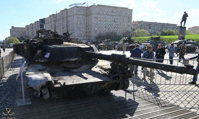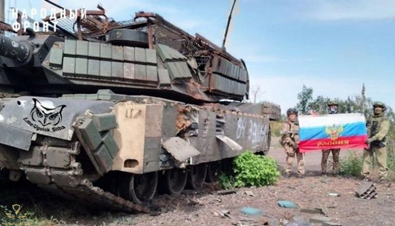 دبابة أبرامز الأمريكية M1A1 مدمرة في اوكرانيا ، تصل إلى العاصمة الروسية موسكو